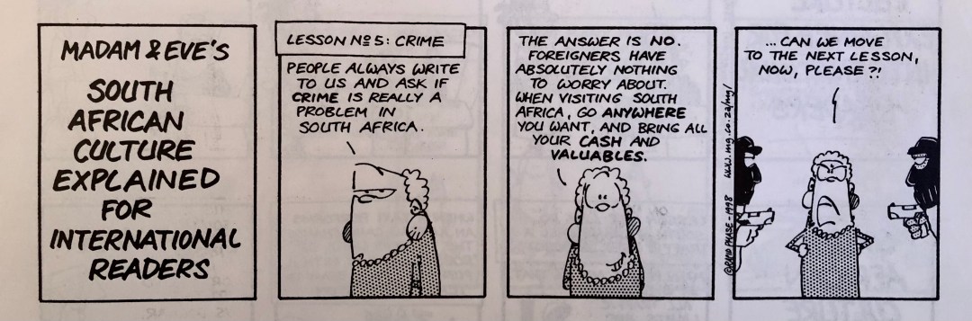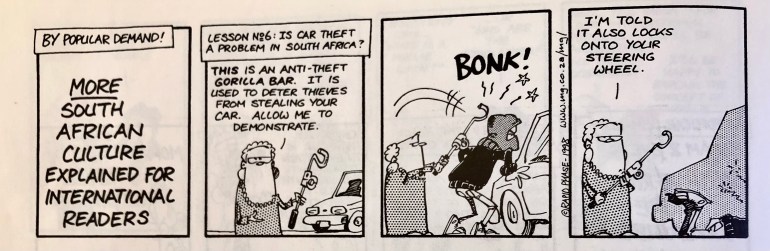 Ai tempi ovviamente per me era un’affermazione ripetuta un po’ a pappagallo per darmi un tono ma la realtà era che veramente Johannesburg era (ed ancora è) la città col tasso di criminalità più alto al mondo e anche noi non uscimmo indenni dai nostri tre anni sudafricani.