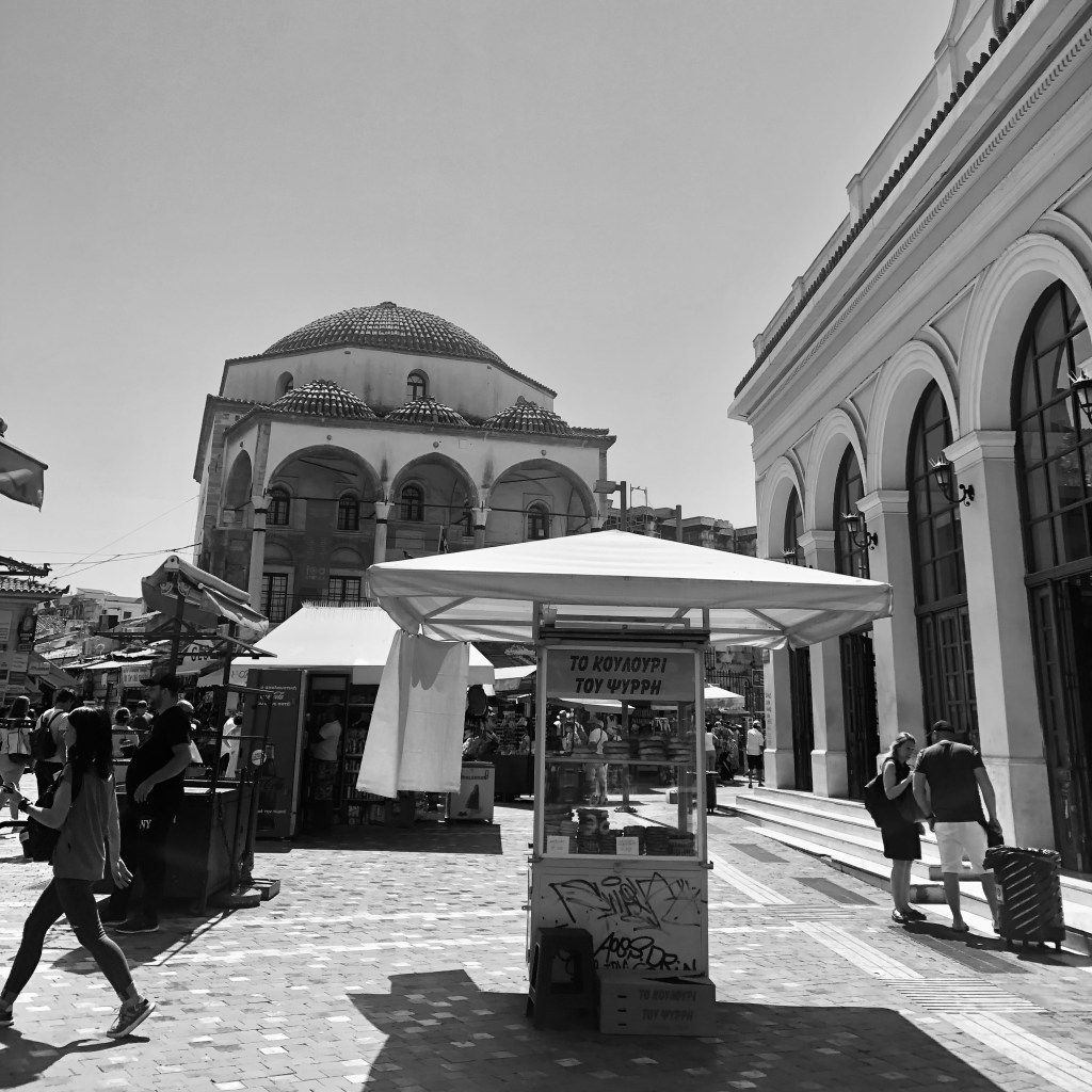 Di Atene avevo ricevuto pareri piuttosto delusi, due rovine e poco più mi avevano detto. E ok, se arrivi da città che sono musei a cielo aperto in effetti Atene non può colpirti per la bellezza della sua architettura. Richiede un po’ di immaginazione ricostruirne l’antica grandezza ma quel che c’è basta per farsi un’idea delle dimensioni e del fasto di quel che oggi si presenta come un rudere. Nessuno però mi aveva parlato dell’atmosfera di Atene, delle piazze che compaiono all’improvviso e invitano a fermarsi e, se hai compagnia, fare due chiacchiere. Un po’ mi sarebbe piaciuto aver conosciuto qualcuno tra ieri e oggi con cui condividere la giornata ma non ci sono state grandi occasioni e forse soprattutto non sono il tipo.