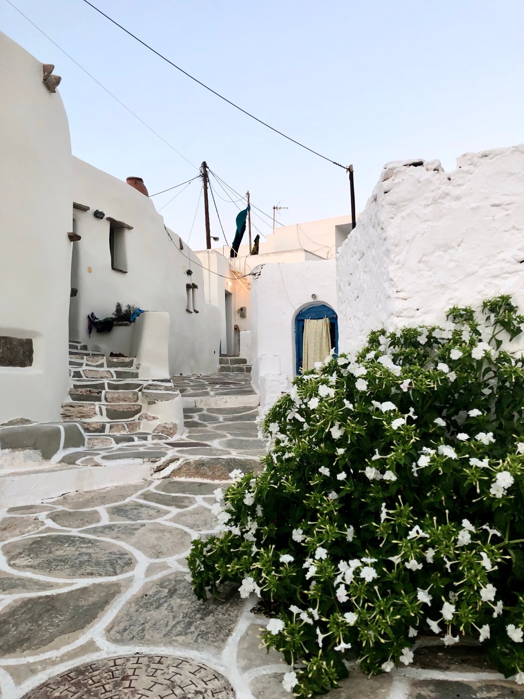 I chora erano i centri all’interno delle isole in cui si rifugiavano le popolazioni locali per sfuggire alle incursioni dei pirati. Qui la Chora è divisa in due parti: Kastro, la parte veneziana dove stiamo noi, e Chorio, la parte greca di fronte.