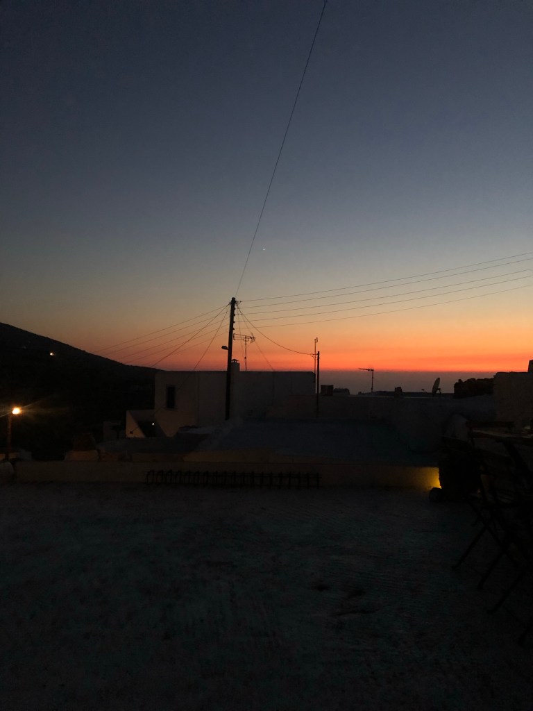 La moglie di mio cugino non è venuta a camminare e ha preparato da mangiare. Riso, pollo con peperoni, tzatziki, peperoni verdi ripieni di feta e fritti, è tutto talmente buono che non so con cosa finire. Dopo i dolci passano degli amici francesi degli zii e questo angolo di Cicladi diventa ancora più una babele di lingue. Italiano, inglese, greco, giapponese, francese. Si passa dall’una all’altra e si continua a parlare di quest’isola che a quanto pare o ami profondamente o non capisci. Io mi sento di appartenere al primo gruppo. Davanti a questa maestosità della storia e della natura, io non riesco a capire di cosa altro ci sia bisogno.
