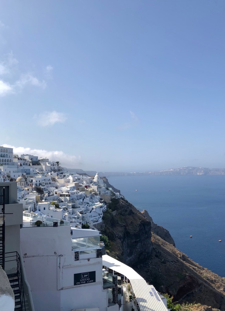 Nascondo il mio fastidio nella scrittura e quando alzo gli occhi scorgo una sagoma velata che potrebbe essere proprio Sikinos e il suo turismo lento e silenzioso, fatto di camminate, di bagni, di storia, di cultura e di mangiate degne di un ristorante alle quali, devo dire, io non ho contribuito se non con la crema. A Sikinos c’erano prevalentemente greci, molti francesi, italiani e poco altro ma niente a che vedere con turismo a tratti becero e festaiolo. A Santorini invece si sentono tantissime lingue, l’età media dei visitatori si abbassa e l’atmosfera è quella di un turismo che non è il mio.