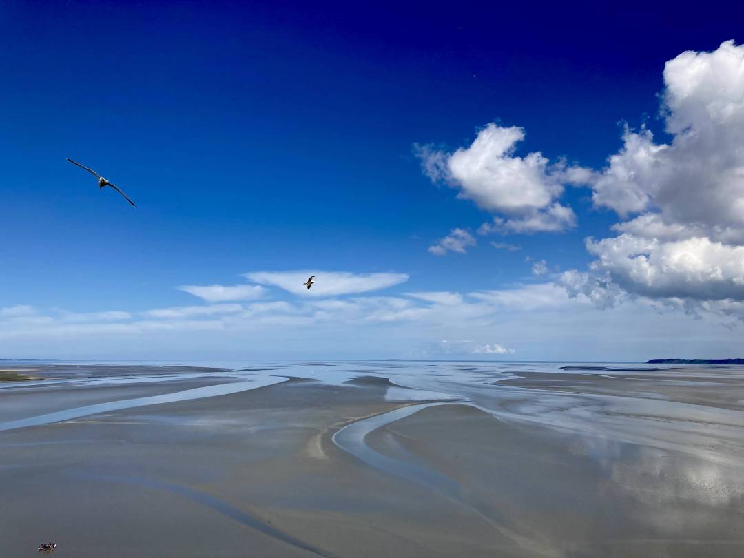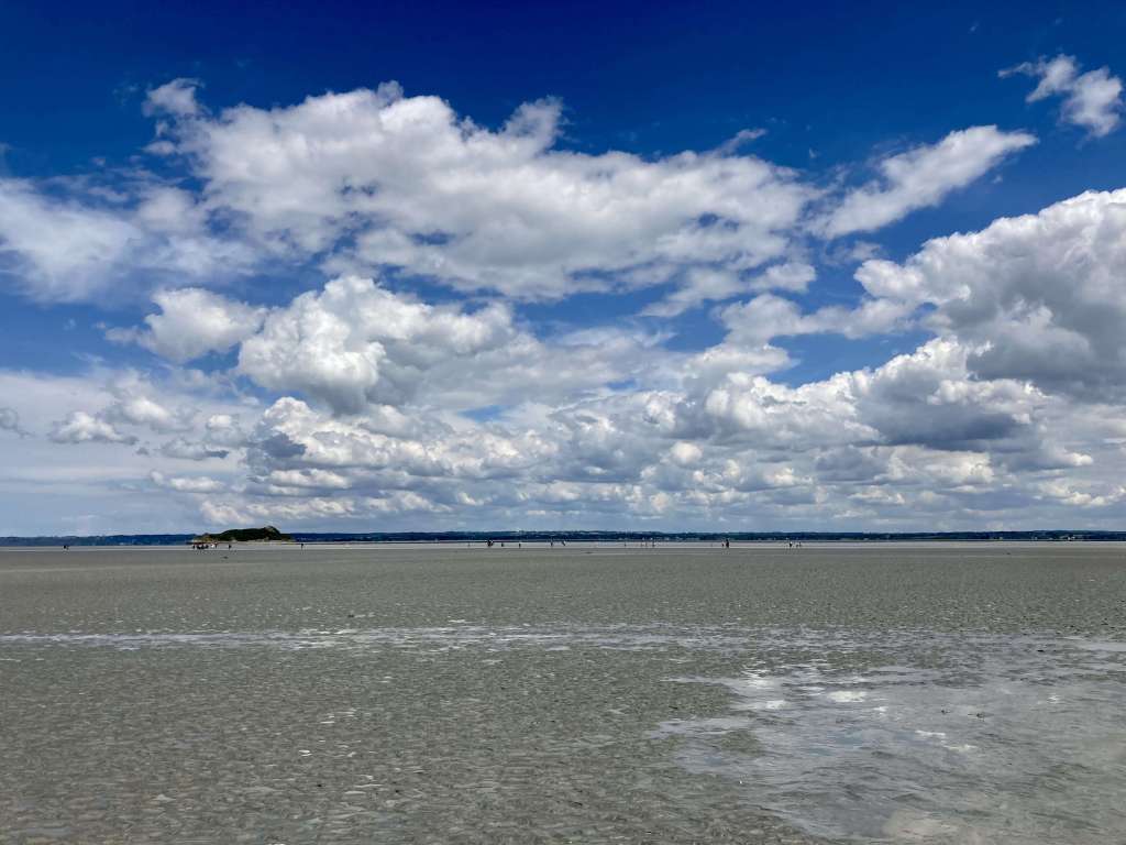 Ieri con le ragazze siamo andate a Mont Saint-Michel. Abbiamo visitato la rocca, l’abbazia, abbiamo percorso le strade straripanti turisti e fastidiosi negozi e bar che di autentico hanno solo il fatto di essere pensati per le orde di persone (tra cui me, per altro) che si riversano per questo piccolo gioiello indeciso tra terra e mare. Prima di tornare verso la macchina, approfittando della bassa marea, ho voluto fare il giro della rocca. Più mi avvicinavo al lato del mare e più sentivo irrefrenabile il bisogno di togliere le scarpe e addentrarmi nella infinita landa asciutta e desolata che si apriva verso lo stretto della Manica. Sembrava irreale, i miei piedi che calcavano quel che sembrava un bagnasciuga e in lontananza specchi d’acqua alti pochi centimetri creavano un’atmosfera straniante di miraggi nel deserto. Come sirene mi chiamavano ma fortunatamente il pensiero di Trine e Mathilde che mi aspettavano è stato più forte perché ad un certo punto sono sprofondata nella sabbia melmosa fino a oltre le caviglie e chissà dove mi sarei potuta trovare avessi esplorato ancora.