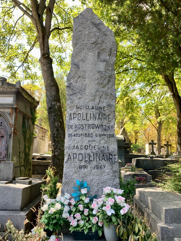La domenica in realtà è stata serena, una passeggiata post pranzo al cimitero del Père Lachaise per constatare che il turismo funerario non rientra fra i miei must ma la foto al luogo di sepoltura di Guillaume Apollinaire*, nel dubbio l’ho fatta. Eppure questo enorme spazio verde, costellato di lapidi, cappelle, monumenti funebri, un crematorio che si sviluppa su più piani anche sotterranei meriterebbe più di un’osservazione: prima fra tutte che il turismo che lo anima è conosciuto e quindi al suo ingresso si può prendere una cartina gratuita che aiuti a districarsi fra un Vincenzo Bellini e un barone Haussmann, fra un Oscar Wilde e un Jim Morrison, fra una Maria Callas e una Colette sparsi fra i tanti sconosciuti ai più tumulati in mezzo al jet set dei defunti.