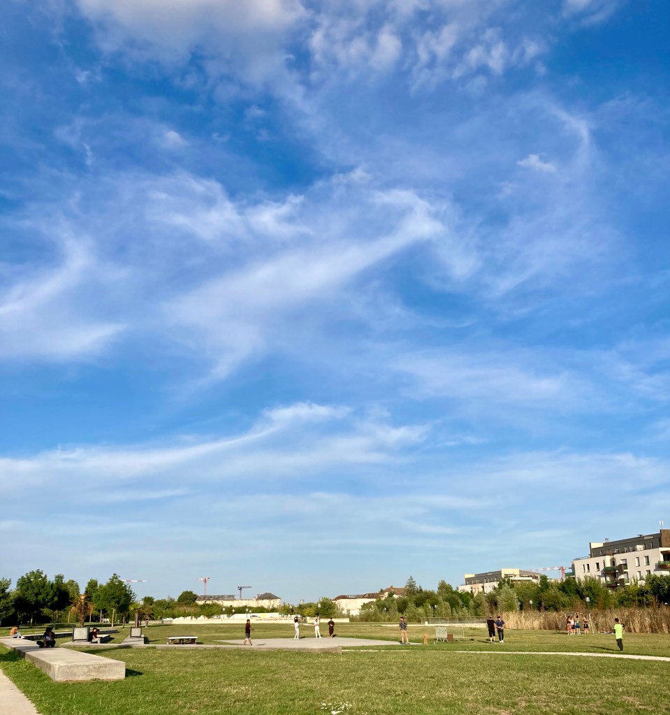 Il primo tardo pomeriggio in cui sono uscita sono rimasta abbagliata dal gruppo di giocatori di cricket. Un battitore in particolare non mancava un colpo. Mi sono fermata qualche minuto a guardare, strabuzzando gli occhi davanti alla sua sicurezza nel colpire, e mi sono chiesta se sarei ancora in grado di fare alcunché su un campo da cricket. Altrimenti nel campino adibito dei ragazzini giocavano a calcetto e in mezzo al prato degli altri a pallavolo. Nello skatepark un ragazzo si esercitava con lo skate e tanti bambini giocavano coi loro monopattini. Immancabile: la sabbia per la pétanque. Se fossi arrivata fino ai tavoli da ping-pong probabilmente li avrei trovati occupati. Lungo i due laghetti all’interno di questo piccolo parco c’erano degli angoli in cui, se guardavo bene, non mi sembrava neanche di essere in città.
