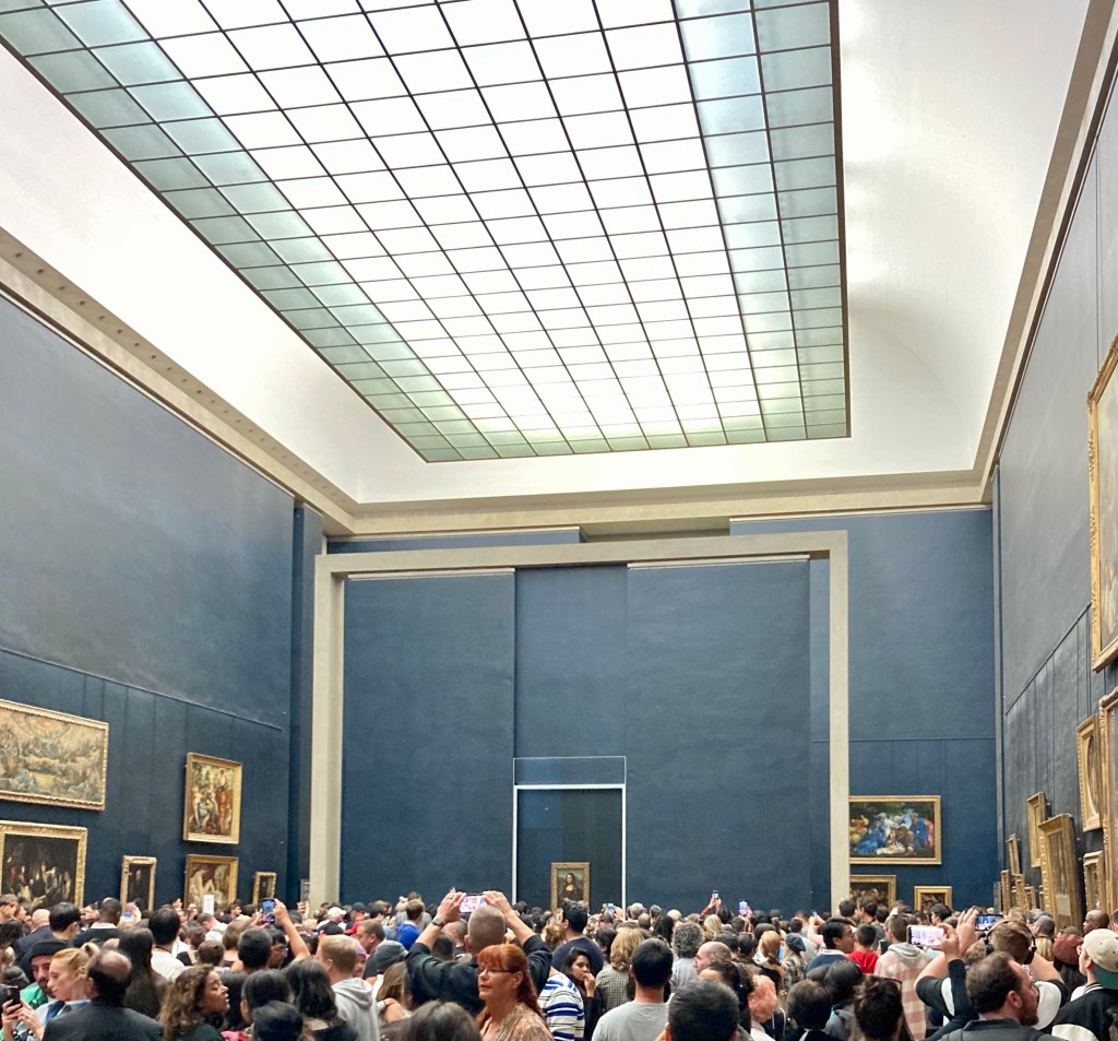 Il Louvre è la cosa più vicina all’Inferno che mi sia capitato di frequentare ultimamente. La fila comincia già fuori dalla piramide per i controlli di sicurezza ma almeno lì i rumori si disperdono nell’aria, all’interno del museo invece tutto rimbomba. La sala della Gioconda è affollata quanto una sala da concerti piena, le opere più famose si riconoscono dai capannelli di persone intente a fotografarle e fotografarsi in loro compagnia e mi sembrava quasi di vederla la Venere di Milo che sbuffava perché anche oggi sarebbe stata immortalata migliaia di volte senza che qualcuno si fosse soffermato a osservarla per più tempo di quello necessario allo scatto perfetto. Oppure la Nike di Samotracia: cosa fotografavano di lei i visitatori, la sua fama o la viva potenza che emanava dal suo piedistallo a forma di prua? In generale tutta la visita mi è sembrato un caotico viaggio nella società dell’apparenza, in cui poter mostrare di essere stati al Louvre conta più di essere stati al Louvre.