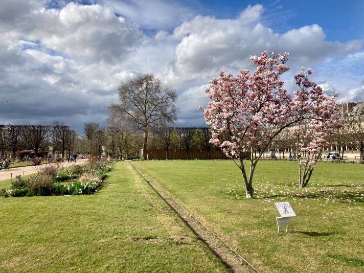 Il giorno prima lo avevo trascorso interamente con mia cugina e sua figlia di cui un tempo sono stata la babysitter e ora è al secondo anno di università a Parigi. Abbiamo preso un caffè in uno dei bar affacciati sul belvedere di Belleville mentre Silvia svuotava lo zaino per mostrarmi il contenuto del mio “pacco da giù” (qualche vestito, olio, confetti, ovetti di cioccolato, alloro, la mia tisana della sicurezza, delle Gocciole extra dark). Poi, tra una chiacchiera e l’altra, la fame ha preso il sopravvento e Anna ci ha portate a Belleville in un piccolo ristorante cinese dall’atmosfera familiare specializzato in pasta fatta a mano. Con ancora il sapore dei bao più buoni che mi sia capitato di mangiare abbiamo deciso di sfidare la fila dell’Orangerie per la mostra dedicata a Matisse. Uscite dalla metro ed entrate nelle Tuileries, la primavera si mostrava in tutte le sue caratteristiche: temperature miti, un sole splendente sulle magnolie fiorite e un cielo plumbeo sulla Torre Eiffel in lontananza. Abbiamo fatto una piccola pausa digestiva approfittando di questa usanza tutta francese di mettere a disposizione numerose sedie all’interno dei parchi, alcune delle quali con lo schienale reclinato per potersi meglio godere il sole. Infine una buona ora e mezzo di fila che ci ha lasciate con appena una mezz’ora da dedicare all’esposizione. C’è una cosa che mi stupisce sempre dell’arte (in senso ampio) ed è la sua assenza di barriere, la sperimentazione, la presenza di alcune nozioni che però ogni artista combina a modo suo per creare qualcosa di diverso. Vale nelle arti grafiche ma non solo e ogni volta mi sorprende come, a partire dagli stessi elementi, i risultati possano poi essere così diversi. E sì, non mi dispiacerebbe avere un’opera di Matisse in casa.