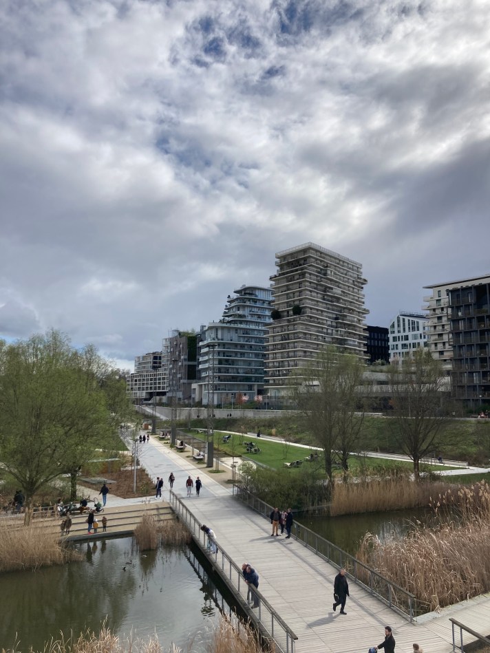 Sono anche andata a far assaggiare i cannoli ad un’amica cinese che un mesetto fa mi ha aveva detto di aver mangiato la ricotta per la prima volta chiedendomi se c’erano altri modi di mangiarla oltre che col pane. Mentre parlavo (in francese) con la ragazza siciliana della boutique ho avuto così chiaro il sentimento di appartenenza a quello che resta il mio paese, quel modo di riconoscersi e di sentirsi parte di qualcosa benché si sia deciso di lasciarselo alle spalle. Dopo pranzo G. mi ha portata a fare una passeggiata nel parco che c’è vicino casa sua, nel diciassettesimo arrondissement, in una Parigi così lontana dall’immagine romantica a cui ci ha abituati la sua rappresentazione in film, libri, televisione. Il parco Martin Luther King è all’interno della Parigi del futuro, fatta di palazzi moderni e in uno stile non rinnegato come quello dell’edilizia popolare. Come accade appena c’è un po’ di sole, il parco si era riempito del brulicare dei cittadini e dei giochi dei bambini.