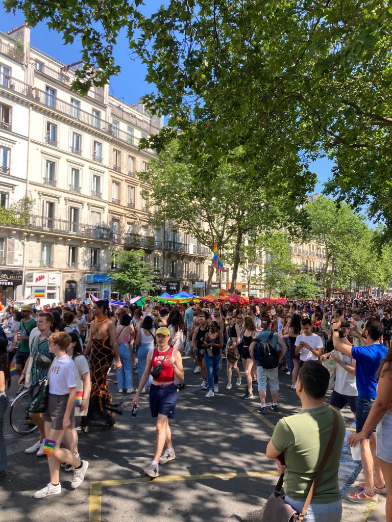 C’è stata la marche des fiertés, il gay Pride insomma, a cui non ero sicura di voler andare perché era il 24 di giugno e, non solo quando arriva il 24 di ogni mese è più facile per me tornare a Saint-Denis, con Morgane esanime per terra e io in una sorta di ovatta dissociata, ma anche perché ero sicura che, fosse stata ancora viva, lei sarebbe stata lì e andare alla marcia per me significava sicuramente fare i conti con la sua morte. Invece sono andata, con un’amica e una sua amica, pentendomi della mia scelta di andare tanto ero stanca quando sono uscita di casa, ma poi contenta perché, tra le varie cose, l’amica della mia amica era carina e, anche se è stato un pensiero senza seguito, ho pensato che dentro di me ci fosse ancora vita ed è stato rassicurante saperlo. Per questioni ecologiste non c’erano carri e non c’era musica, solo tanti colori e gli infiniti modi di essere indossati da ogni persona presente alla sfilata. Arrivate alla fine del corteo c’era un concerto di musica techno non particolarmente interessante e, non avendo voglia di rientrare da sola ed essendo a due passi da casa, ho invitato le mie due compagne di Pride a casa. Che può sembrare un evento minore ma è una cosa che capita di rado ed è bene annotarla. La serata sarebbe proseguita più a lungo se non fossi stata invitata al compleanno di Elio e mi fa sempre piacere essere presente alle sue cose al di là del mio ruolo di nounou. Il suo lungo abbraccio prima di salutarci è stato l’occasione di un timore pidocchi sopraggiunto qualche giorno dopo ma, poco male, ne è valsa la pena.